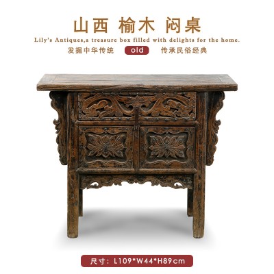 中式古典三屉桌复古老榆木玄关台边桌家居装饰桌桌案几写字桌