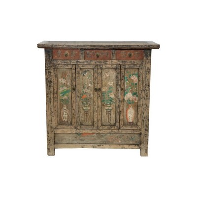 清晚期杨木古董家具三屉四门柜彩绘柜玄关柜QB18040131 Antique Poplar wood Cabinet