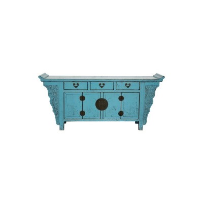 清晚期榆木古董家具连三蓝漆连体柜餐边柜Q1706004840 Antique Elm wood Cabinet