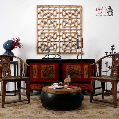 民国松木东北画柜红漆柜边柜QB18030007 Minguo Pine wood Cabinet